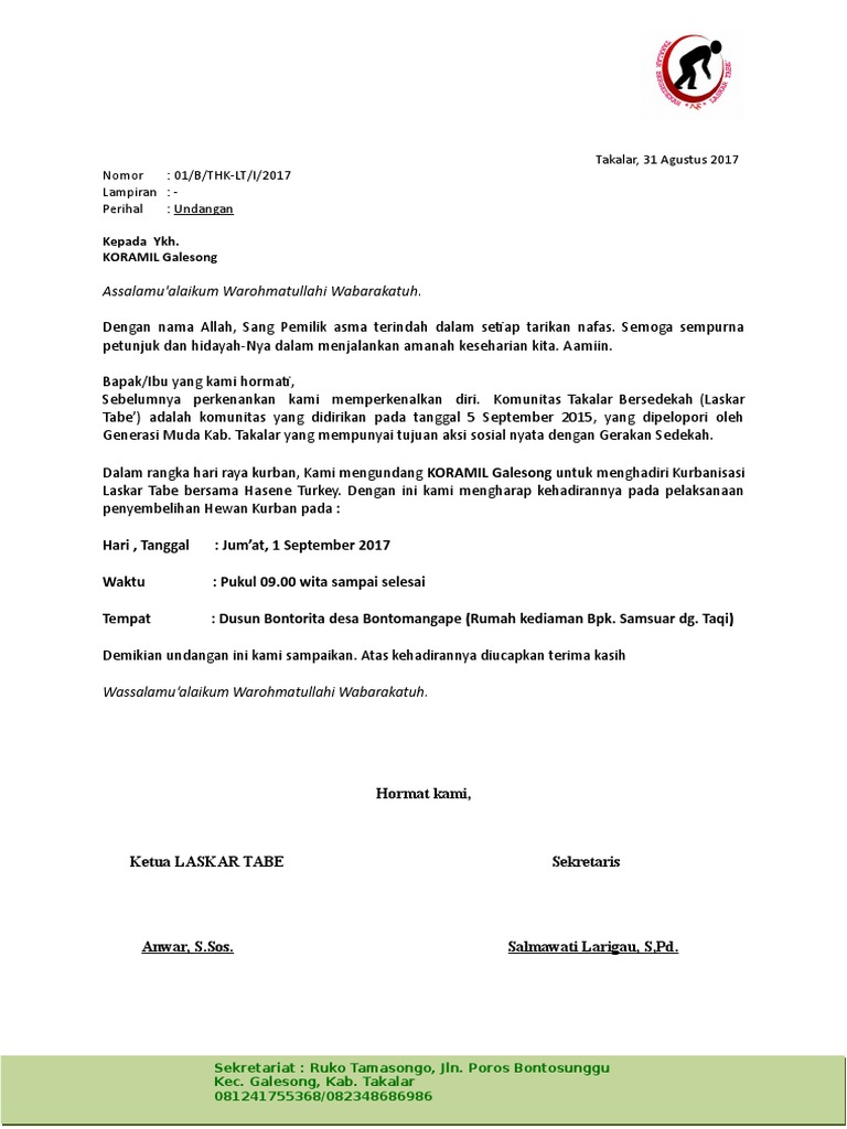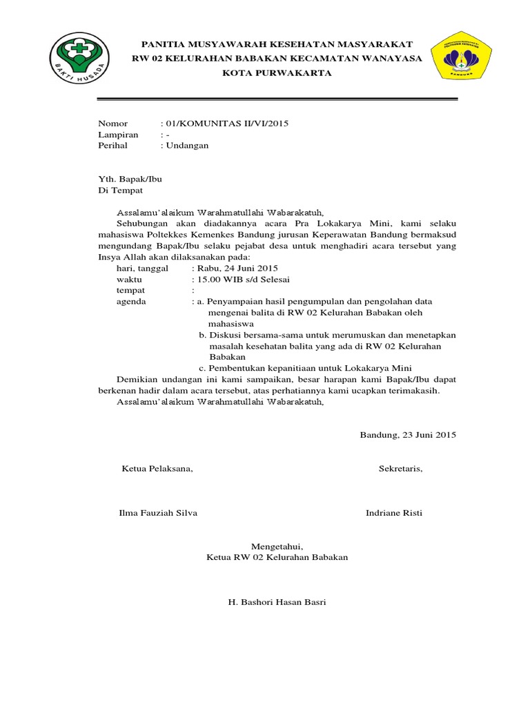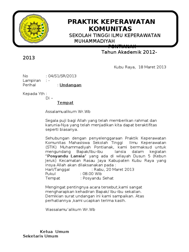 Ada dua jenis surat undangan yaitu surat undangan tidak resmi dan resmi. Contoh surat undangan tasyakuran dan marhaban bayi. This file contoh surat undangan komunitas.pdf is hosted at free file sharing service 4shared. Savesave surat undangan komunitas.doc for later. Tanda tangan dan stempel, pada bagian inilah yang membedakan antara surat resmi dan tidak resmi, pada surat resmi kamu harus bubuhkan tanda tangan dan stempel organisasi atau lembaga.